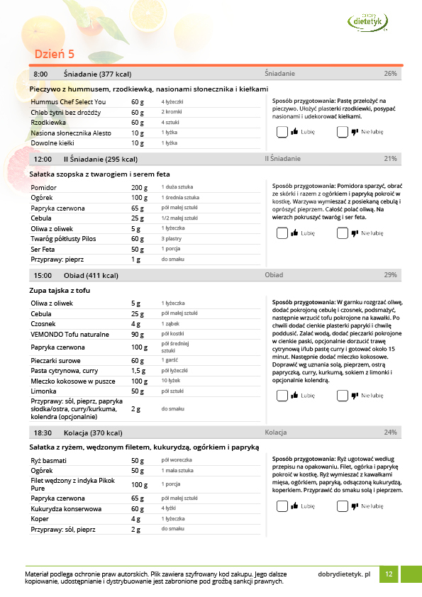 Obok szczegółowego planu dietetycznego otrzymasz również praktyczny poradnik korzystania z opracowanego planu dietetycznego.