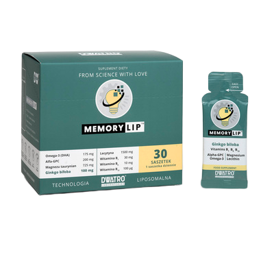 Synergistyczne połączenie cytykoliny, NR, miłorzębu, lecytyny, taurynianu magnezu oraz witamin B1, B6 i B12 w postaci doustnego żelu liposomalnego.